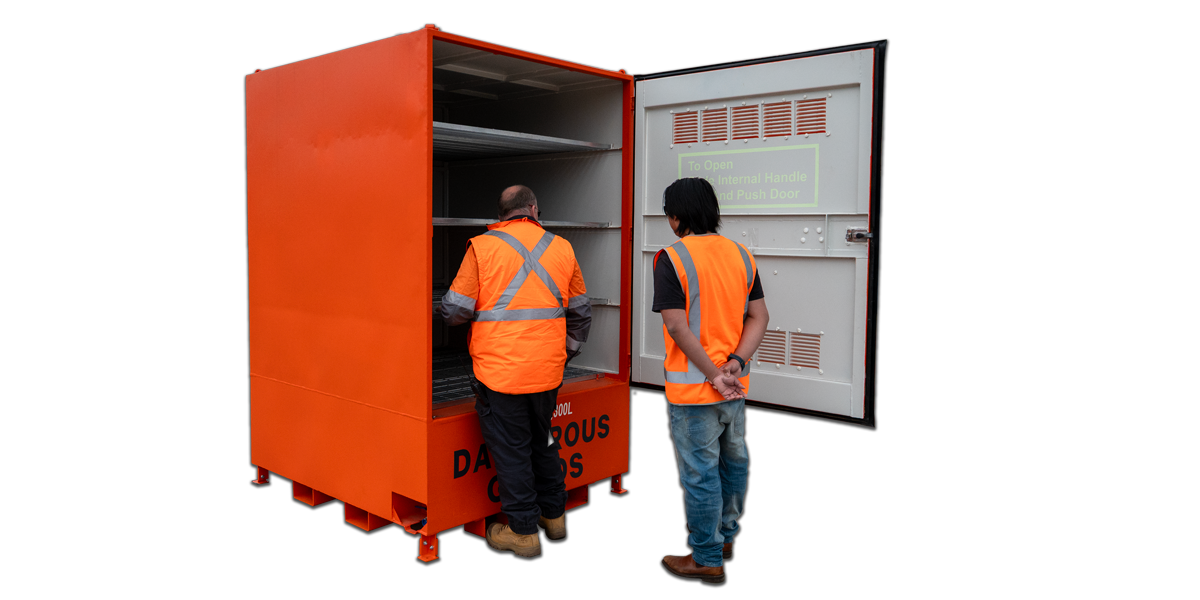 Keep your hazardous goods secure with the external lock whilst keeping workers out of harm's way with the use of the interchangeable placard signage plate located on the external doors.