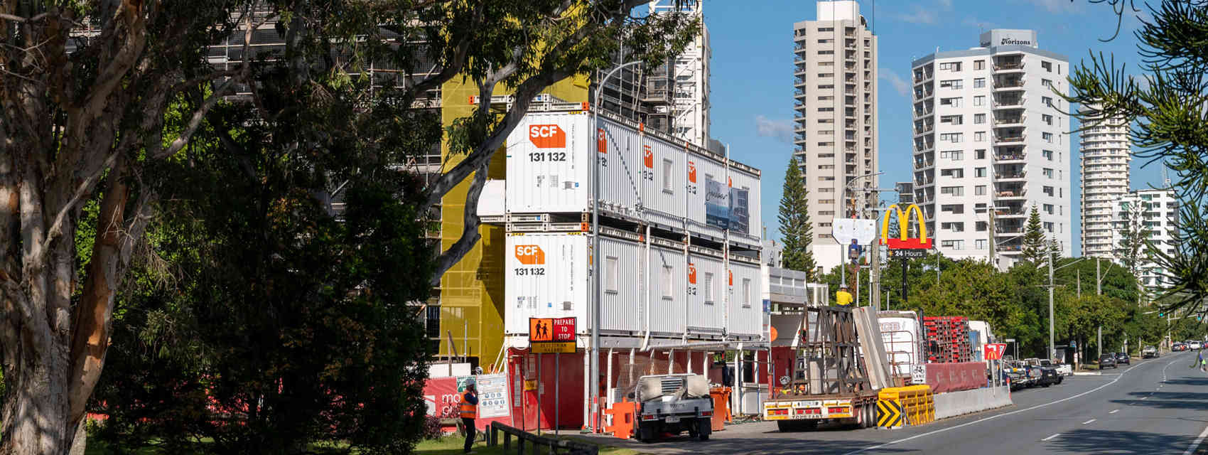 We use Hiab cranes when there’s not enough space for a side loader or tilt tray – or if your site has other tricky obstacles to manoeuver around (like fences). The crane lifts and then places the shipping container. This method also makes it easy to place containers at an angle, or on raised areas.