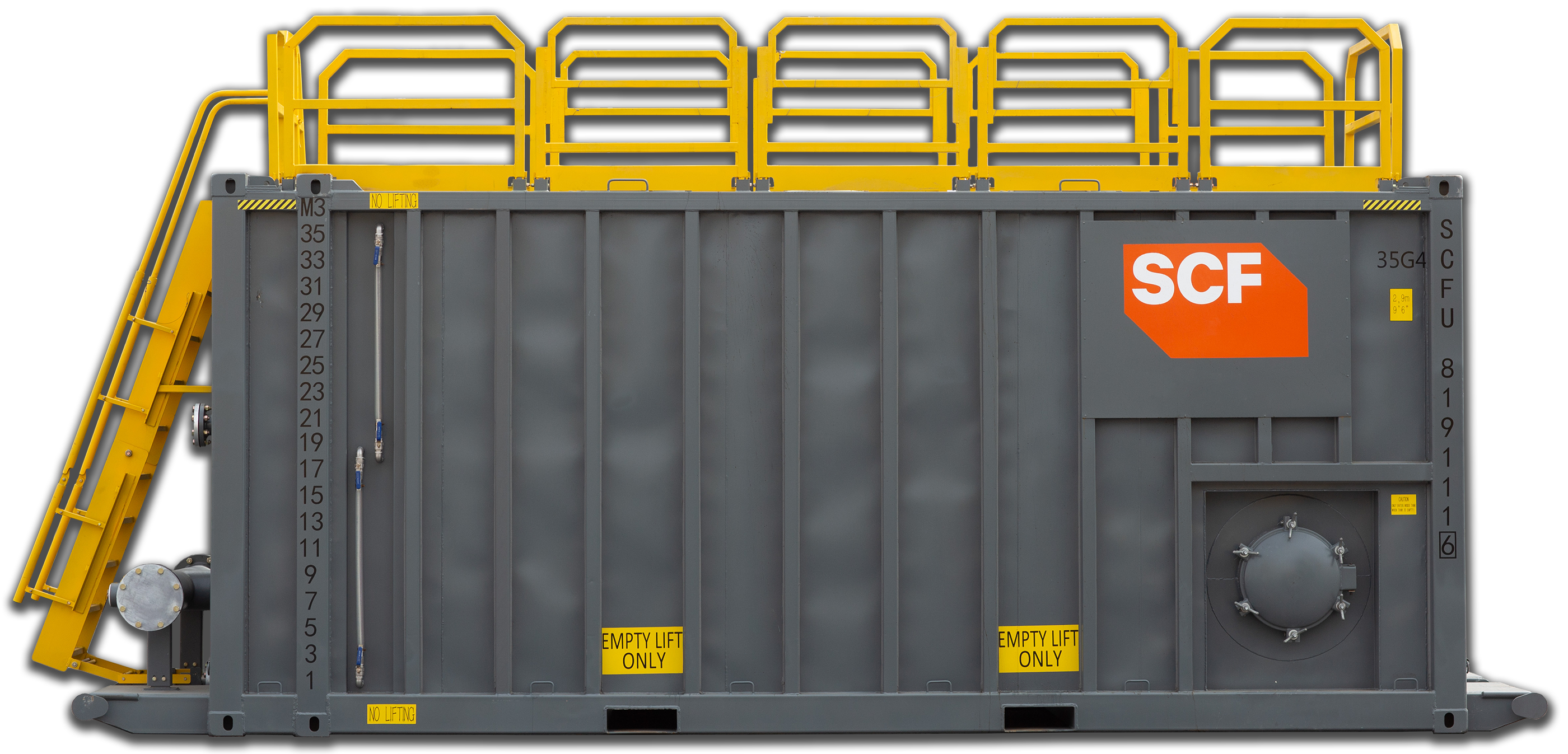 SCF’s 25ft Bulk Liquid Storage tank container is designed for small-scale metro construction remediation and dewatering projects. Manufactured for reliability, durability and efficiency, they are the ideal on-site storage solution for liquids, with a capacity of 37,000 L.
